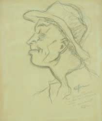 (1902-1992) : dessin au crayon gras de M. Chevalier de profil,