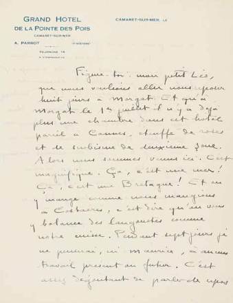. L.A.S., [1952 ?], à une « chère enfant » ; 2 pages in-4 (plis).