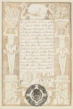 La première, signée par Lucas de Valdes (Séville 1661-Cadix 1724, peintre et graveur), représente les grandes armoiries