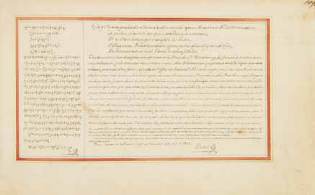 rouge avec cadre de maroquin citron avec frise à la grecque dorée et filets en pointillé sur les plats, doublures et