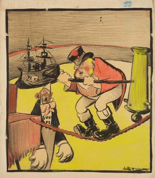 sur papier fort, représentant une scène de cirque symbolisant les