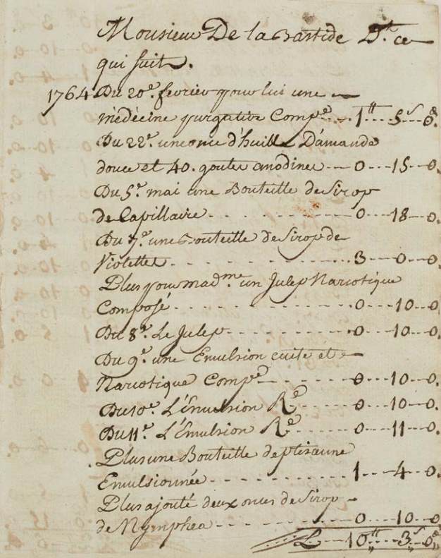 dues par M. de la Bastide pour la fourniture de médicaments.