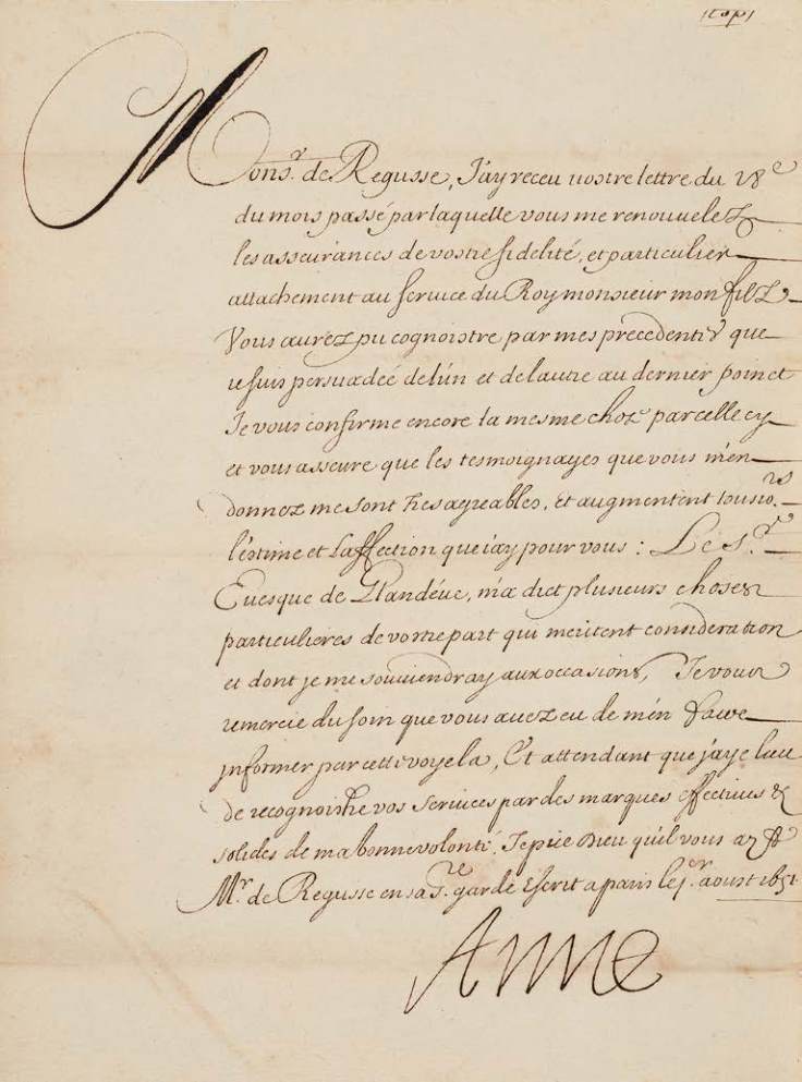 à sa mort (1643-1651). L.s. « Anne » datée de