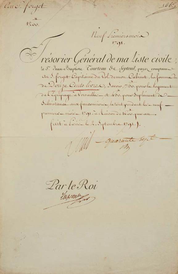 de payer comptant au Sr Forget 1.200 livres, pour l’Équipage à