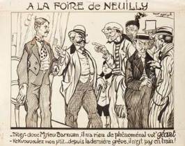 Grand éventail imprimé en chromolithographie, montrant une scène humo-