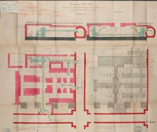 plans du bâtiment et l’ascenseur, ca 1895. Plusieurs grands formats. Arch.VOYER. Plans signés par le maire de la ville. Joint,