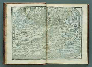 Belle édition du « Canzoniere » accompagnée du commentaire d’AlessandroVellutello, commentaire le plus célèbre et le plus répandu au XVI° siècle, paru pour la première fois en 1525. Cette édition vénitienne de 1528 chez Vivaldi est la seconde sur près de trente publiée à la Renaissance. Elle est imprimée en caractères italiques avec le texte entouré du commentaire et ornée d’un beau bois couvrant l’espace de 2 pages montrant une vue panoramique du Comtat Venaissin. Cernes clairs en tête, l’exemplaire a conservé de grandes marges. (Sanders, le livre italien à fgures, n° 5631) (Hor tis, 49).