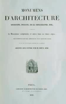 MONUMENS D’ARCHITECTURE gothique, romane, de la Renaissance, etc., accompagnés de décorations sculpturales et autres dans ces divers styles. Paris, Bance aîné, 1841.