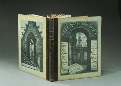 In folio, demi-maroquin bradel ver t, plats imprimés et illustrés de l’éditeur. Nul n’a su mieux peindre que Joannès Drevet sa ville natale. Dans cet ouvrage où revit le Lyon du début du siècle qui fut le sien, le burin de Drevet offre une puissance d’évocation magistrale.