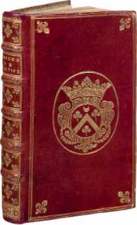 de lys en angle, armes au centre, dos à nerfs orné d’une fleur de lys plusieurs fois répétée, tranches dorées sur marbrure