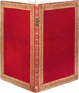 autour des plats sertie par deux guirlandes dorées, dos lisse orné avec inscription en caractères cyrilliques, roulette
