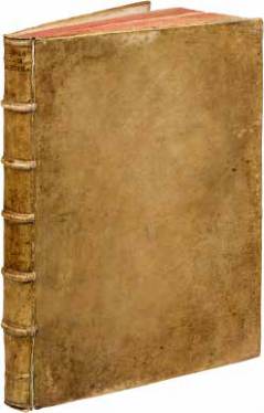 , vélin ivoire rigide, dos à nerfs, tranches mouchetées (