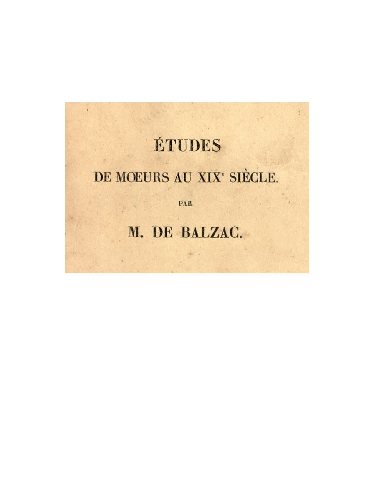 1 BALZAC (Honoré de). Études de mœurs au XIX
