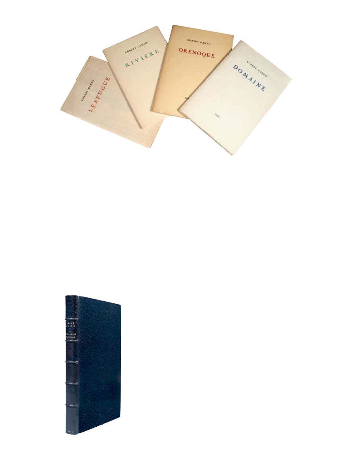 202 GANZO (Robert). Ensemble 4 ouvrages et une pièce autographe signée. Ensemble 4 volumes in-12, en feuilles,