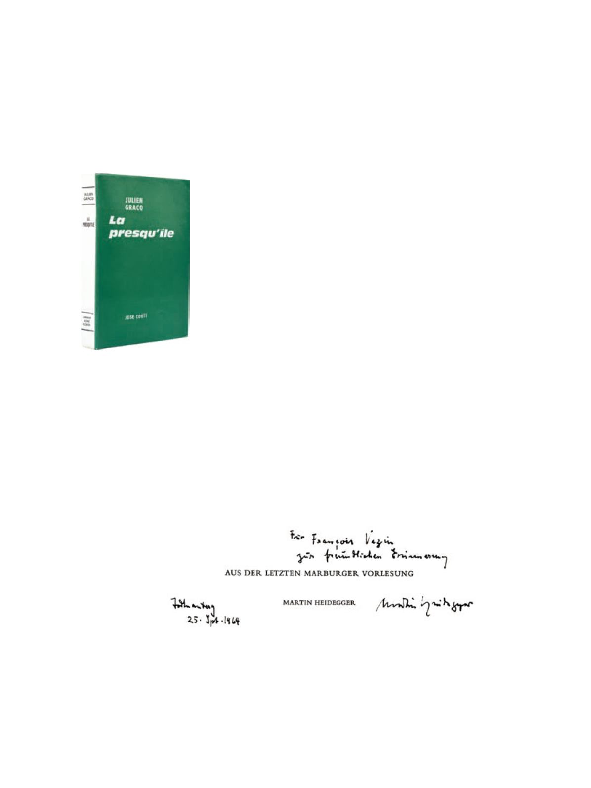 213 HEIDEGGER (Martin). Aus der letzten Marburger Vorlesung.