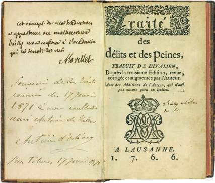 9 [BECCARIA (Cesare)]. Traité des délits et des peines. Traduit de l’italien, d’après la troisième édition, revue, corrigée