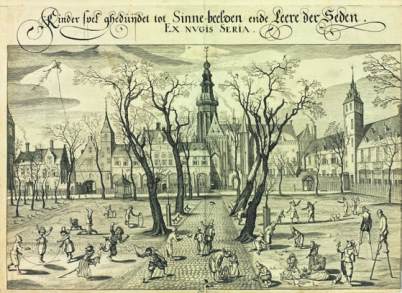 une grande planche dépliante gravée illustrant des jeux d’enfants. Les vers qui accompagnent ces emblèmes sont donnés