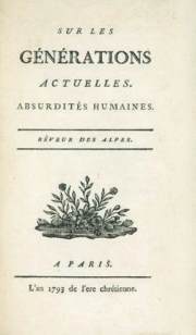 125 [SENANCOUR (Étienne Pivert de)]. Sur les Générations actuelles. Asurdités humaines.