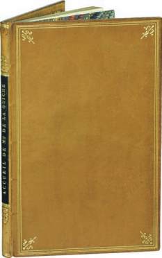 Petit in-8 de 54 pp., 1 f.n.ch., veau blond, triple filet