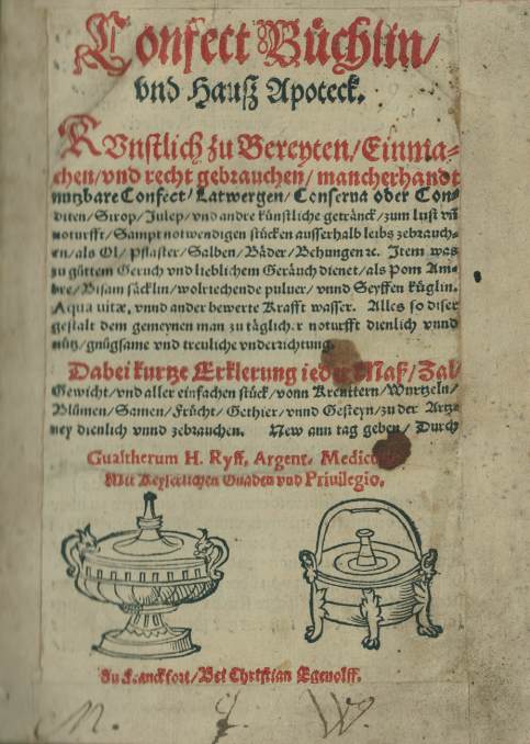 179 RYFF (Walther). Confect Büchlin, und Hauß