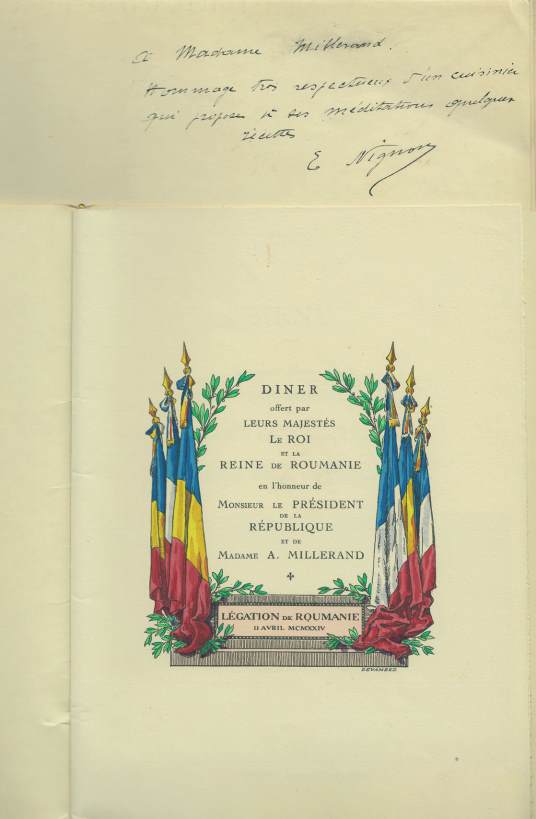 autographe signé « à Madame Millerand, Hommage
