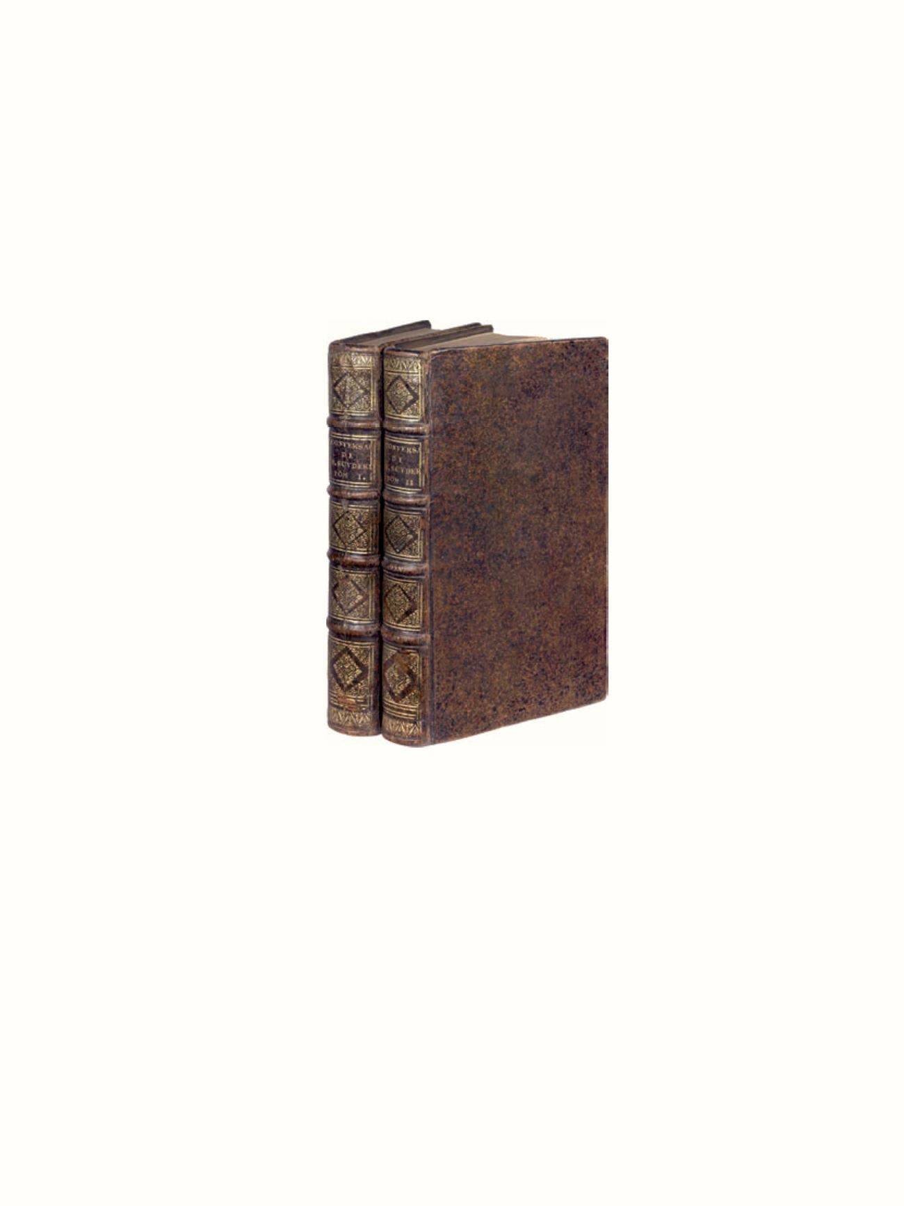 Deux coins frottés, accidents au plat inférieur du tome II, quelques rousseurs éparses.