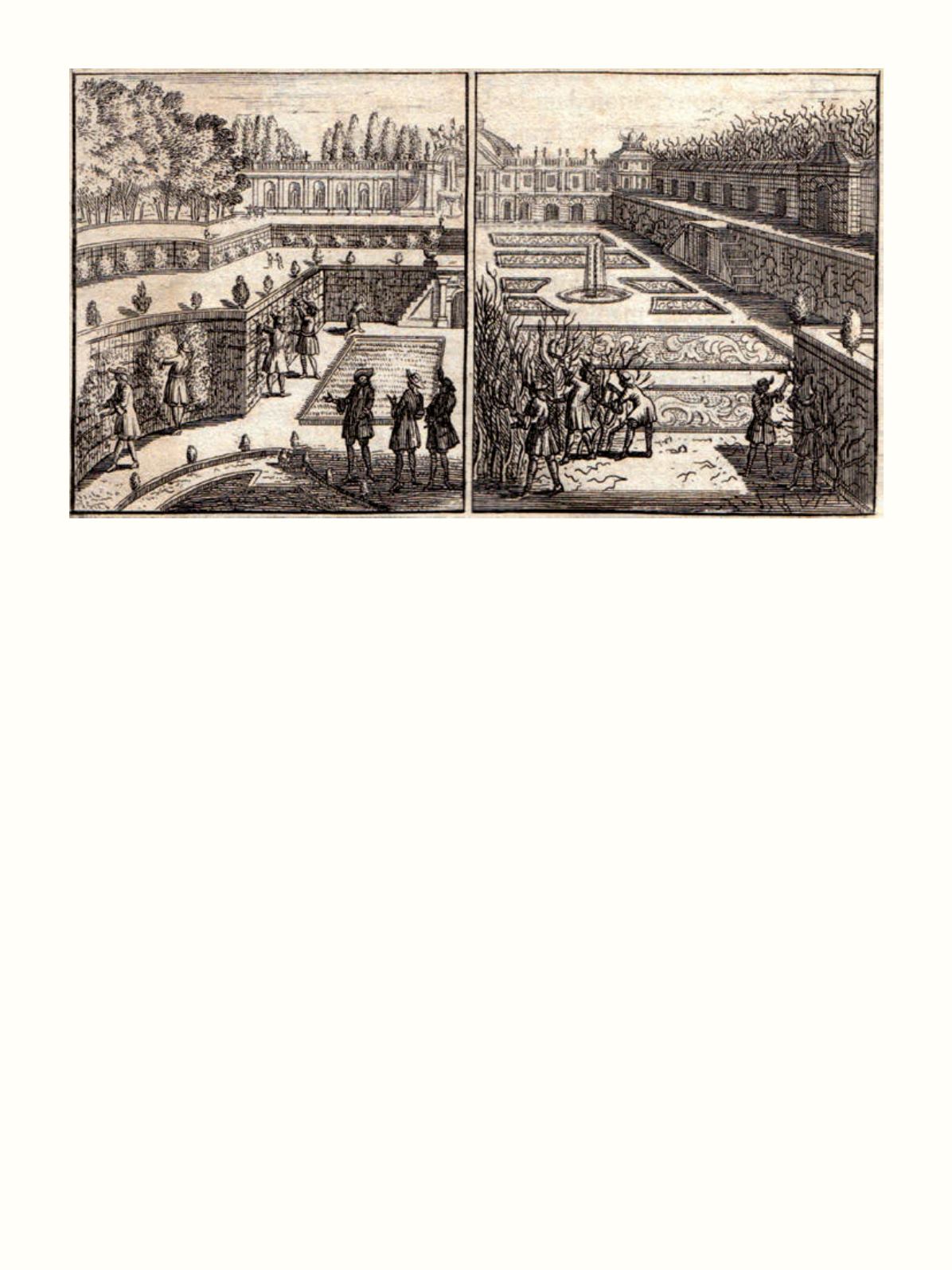 Quelques plans de jardins gravés sur bois ont été imprimés dans le texte et chaque partie est précédée d’une vignette gravée