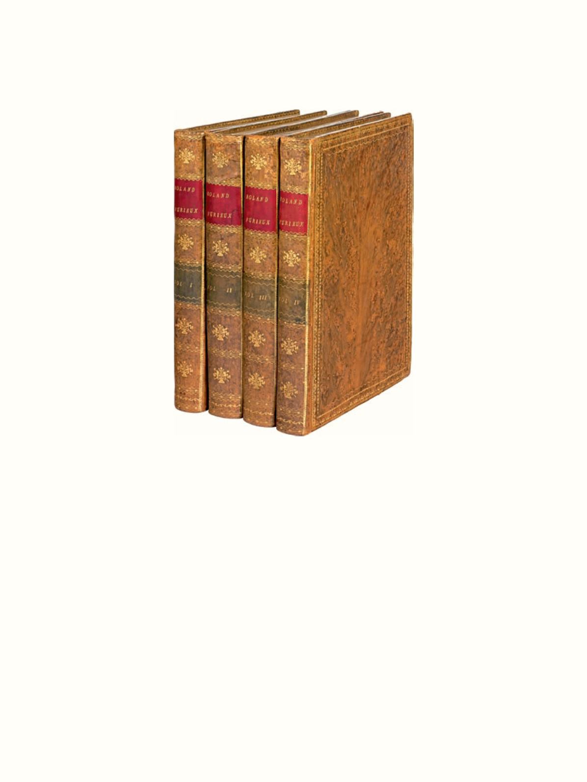 4 volumes in-4, veau fauve raciné, quadruple roulette dorée, dos lisses ornés de lyres, roulette intérieure dorée