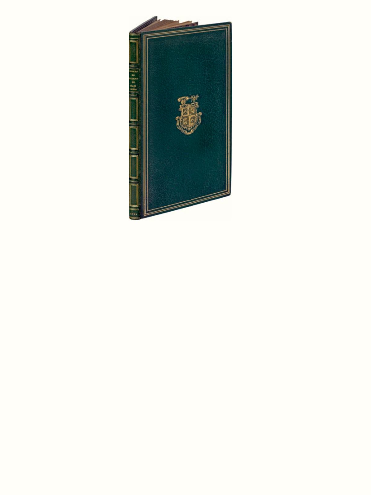 In-12, maroquin vert, triple filet doré, armoiries au centre, filets sur les coupes, triple filet intérieur, non rogné