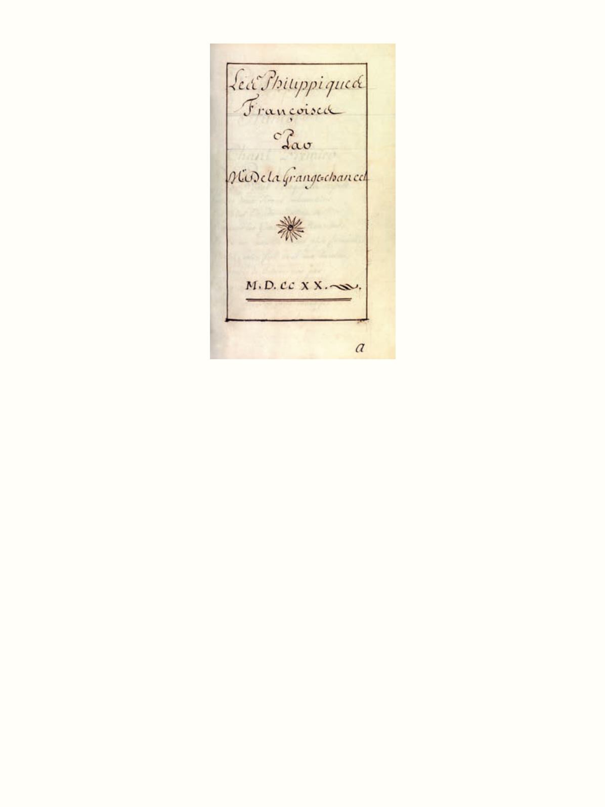 232 [MANUSCRIT]. LA GRANGE-CHANCEL (François-Joseph de). Les Philippiques françoises. S.l.,