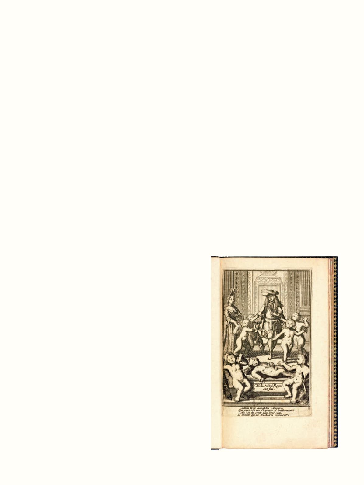 Elle est illustrée d’un curieux frontispice où le roi est entouré