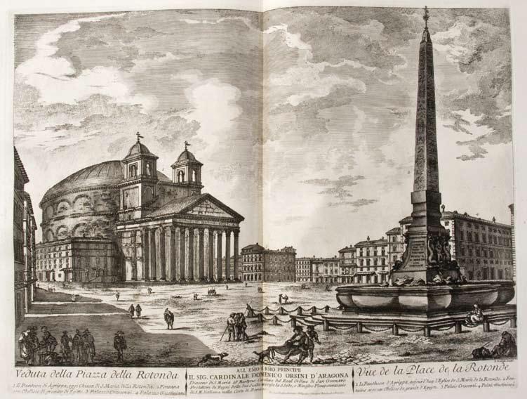 Rome, chez Bouchard et Gravier, de l’imprimerie de Komarek, 1761-63. 2 vol. grand in-folio de VIII, 90 pp.ch. et 73 pl. pour le premier ouvrage ; 2 ff.n.ch., 72 pp.ch. et 44 pl. sur double page pour le second ; veau marbré, dos à nerfs ornés (reliure de l’époque). BAL, 184 et cat. Fowler, 37, pour le 1er ouvrage ; Cat. berlin, 2712 pour le second.