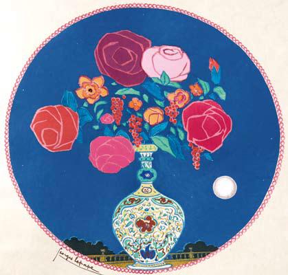 Maquet, 1911. Cartonnage in-f° de l’éditeur illustré par Iribe (dos refait, remonté, pages de garde neuves). Illustré de 7 planches mises en couleurs au pochoir; la première planche, de Lepape, est sur japon. Les trois planches d’éventail sont avec leurs serpentes légendées. Tirage limité à 300 exemplaires. Chemise, étui de conservation.