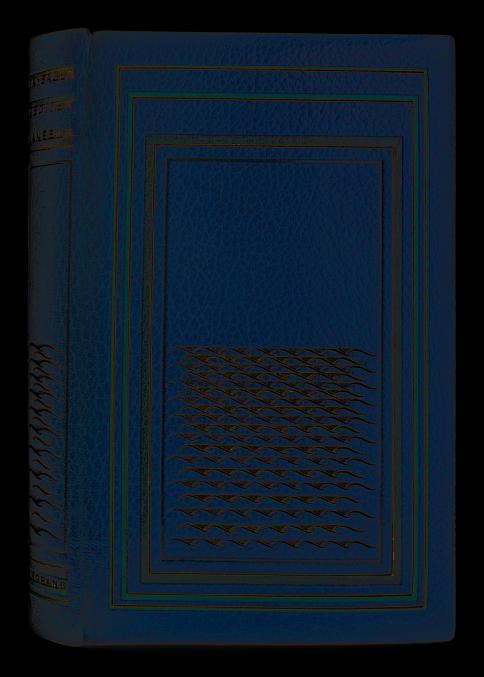 S.éd., 1933. In-8. Reliure plein maroquin bleu azure, avec, sur les plats et sur le dos lisse, un quadruple encadrements de flets dorés et de bandes incrustées en maroquin vert de diverses teintes, et, en son centre, des vaguelettes stylisées, poussées or et argent, titre et nom de l’auteur poussés or et soulignés de flets dorés et d’incrustations de maroquin vert, doublures en maroquin orange, pages de garde en soie bleue, tranches dorées, chemise, étui (G.H. LILLAZ, A. Jeanne dor.). Couv. et dos conservés. Edition originale du texte de Paul Morand.