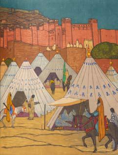 Javal et Bourdeaux, 1927. In-4, en ff., sous couverture mauve rempliée, titre imprimé en noir sur fond or, sous chemise et étui demi-maroquin bordeaux, dos à nerfs, pièce de titre de l’ancien étui contrecollé sur chemise moderne. Illustré de 17 aquarelles d’André Suréda, sont 16 hors-texte, gravées sur bois par Robert Dill, avec des bandeaux, lettrines, motifs et culs-de-lampe en noir et or. Coulouma imprimeur. Tirage limité à 475 ex., celui-ci 1/75 ex. sur japon impérial (n° 40), avec en supplément une suite des hors-textes et du premier bandeau sur japon impérial de la décomposition d’un hors-texte sur chine, une suite des têtes de chapitres et des culs-de-lampe en noir et or sur chine.