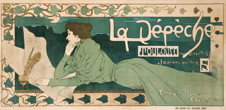 76 x 145 cm. Affiche lithographiée de Foäche. Imprimerie Cassan. Publicité pour le journal « La Dépêche Toulouse ». Entoilée. Légers manques. Encadrée, sous verre.