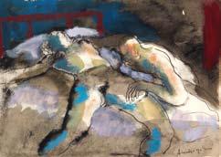 Georges Roche, 1948. In-4, en ff. sous chemise, illustré de lithographies d’Ambrogiani. 1/225 ex. num., illustré de lithographies originales en couleurs d’Ambrogiani. Rousseurs, mouillures, manques au papier, mais cet exemplaire est enrichi de 2 gouaches originales d’Ambrogiani (29 x 22, 21 x 28), l’une signée en bas à droite. Pas d’étui.