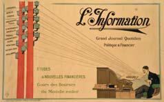200 x 131 cm. Affche lithographiée de J. Mattet, pour le journal « L’Information ». A.P.I.C. (Agence de Publicité Industerielle et Comerciale), Paris. Entoilée. Encadrée, sous verre.