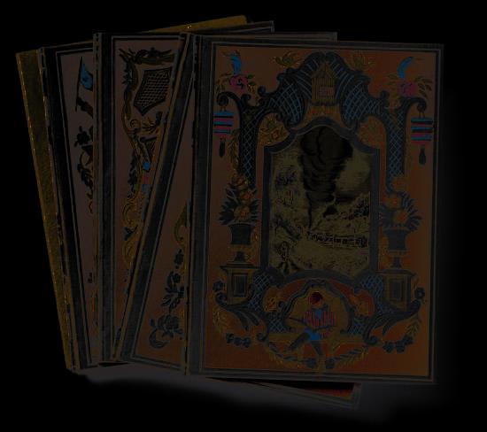 Gallimard, 1926. 4 vol. in-12, chacun avec un cartonnage d’éditeur en chromotypographie différent, médaillons ornés d’une illustration en noir différente pour chacune des