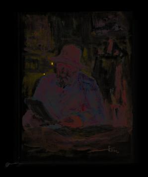S.d. Vers 1928. 20 x 14,5 cm, huile sur vélin, signé « Luce ». Le peintre a réalisé ce bel autoportrait sur le premier plat d’un exemplaire relié de la monographie de Tabaran (« Maximilien Luce », Ed. Crès et Cie, 1928). In-8, bradel en vélin, sous chemise et étui, tête dorée. Sur une page de garde :