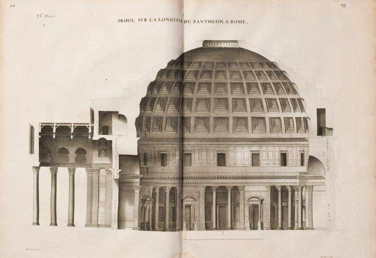 Desgodets avait alors moins de 30 ans et sa remise en question des théories des grands architectes fut accueillie avec une certaine réticence par l’Académie Royale, en particulier par François Blondel qui en était le directeur. Desgodets dut attendre plus de vingt ans pour que ses mérites soient reconnus : “ The book was now accepted as an authority, and is often mentioned as such » (B.A.L.). Quelques rousseurs, trois cahiers intervertis, gardes renouvelées.