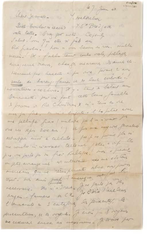 2 p. in-folio. Copenhague, chez Mikkelsen, 7 juin [1947]. Incomplète.