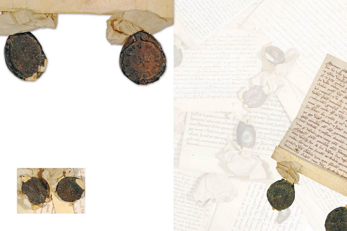 munie de deux sceaux (le second fragmentaire) sur double queue de parche-