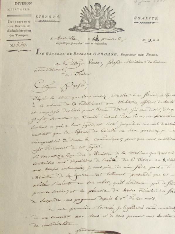 Belle lettre en pleine campagne, en qualité de commandant du l’avant-