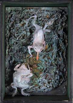 représentant deux crapauds face à face l’un sortant une