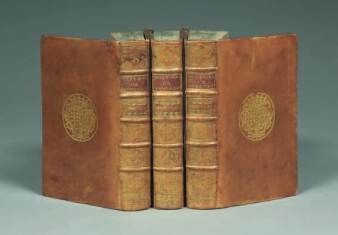 3 volumes in-12, veau fauve, armoiries, dos orné, pièces de titre rouge et de tomaison fauve, pièces d’armes dorées,