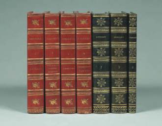 2 volumes in-8, maroquin rouge, roulette dorée, dos lisse orné, roulettes dorées intérieures, tranches dorées sur marbrure