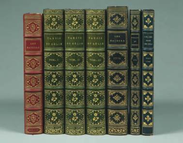 petits coins, dos orné aux petits fers dorés et attributs antiques et champêtres, entre-nerfs mosaïqué de vert, non rogné