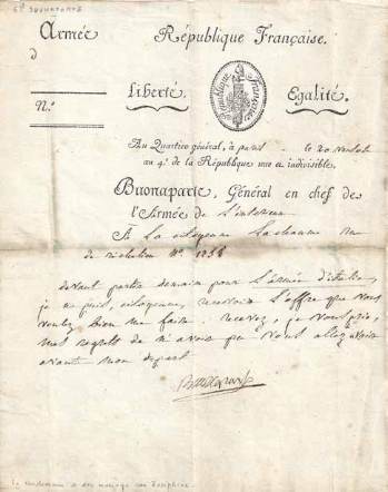 « Buonaparte », puisque c’est à partir de son mariage qu’il francisa son nom]. Joint :