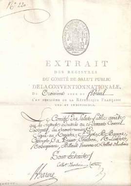 b) Comité de Salut Public An 2 : Extrait des Registres, avec